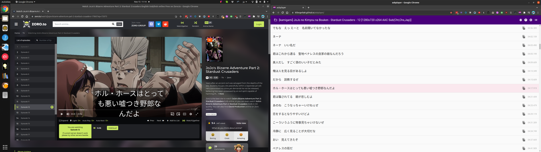 Khi để video chạy ở Netflix thì sub ở trang asbplayer cũng sẽ chạy theo. Bấm vào sub ở trang asbplayer cũng sẽ khiến Netflix nhảy tới phân đoạn tương ứng của sub. Bạn có thể dùng Yomitan để tra từ ở trên trang của asbplayer hoặc ở ngay trên sub luôn cũng được.