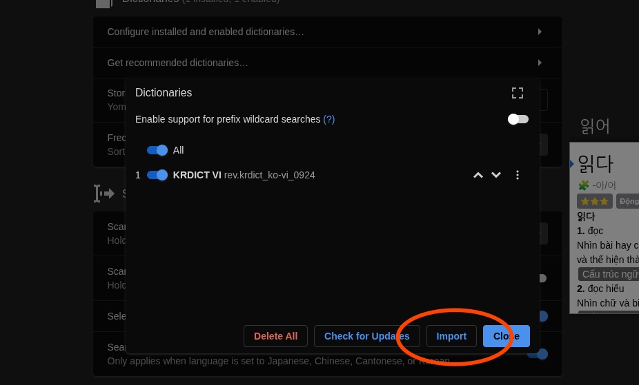 Khi bạn mới cài Yomitan lần đầu, bạn sẽ cần cài từ điển để có thể sử dụng được Yomitan.